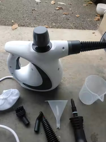 W zestawie znajduje się myjka parowa, komplet wymiennych końcówek do różnych powierzchni, miarka do wody i instrukcja obsługi.