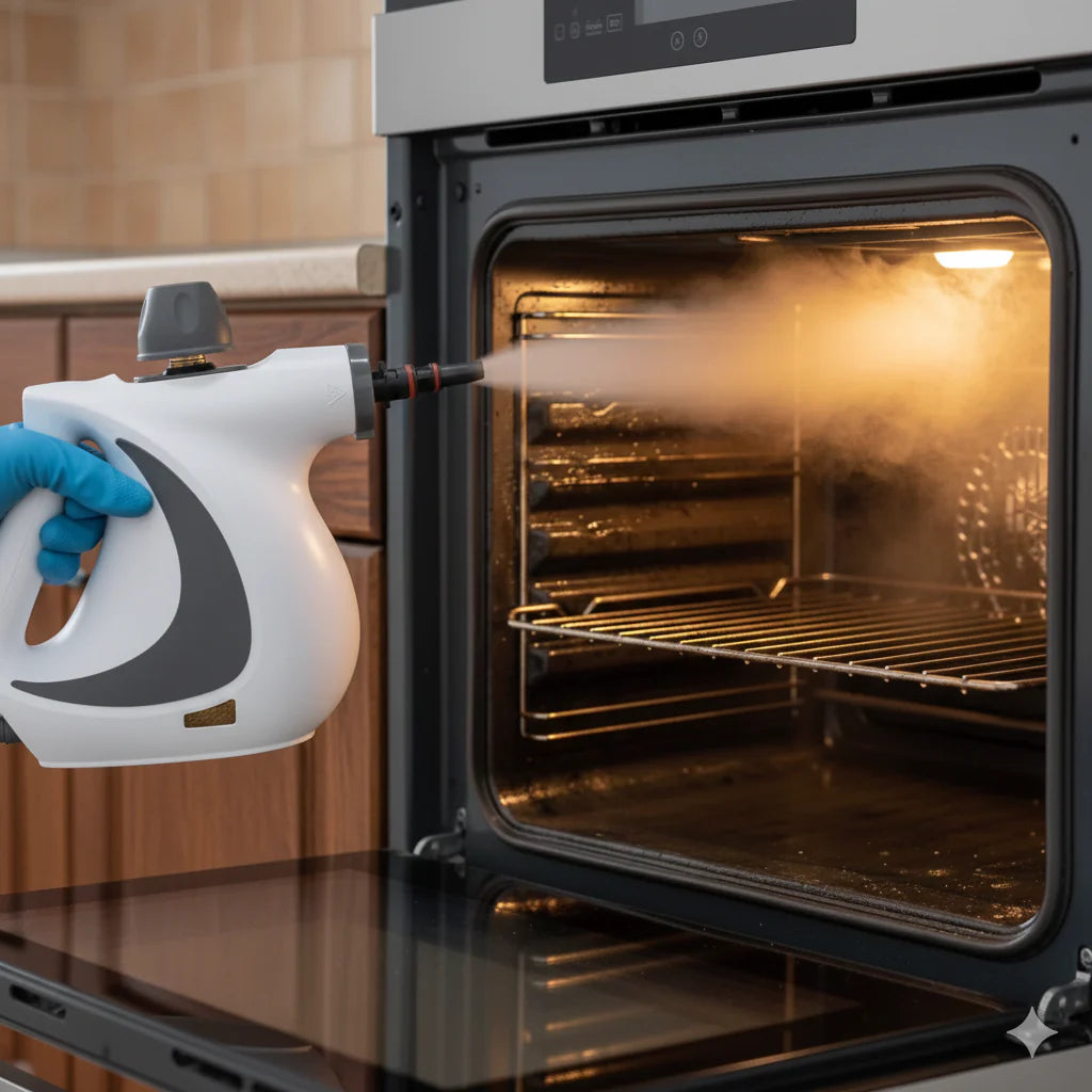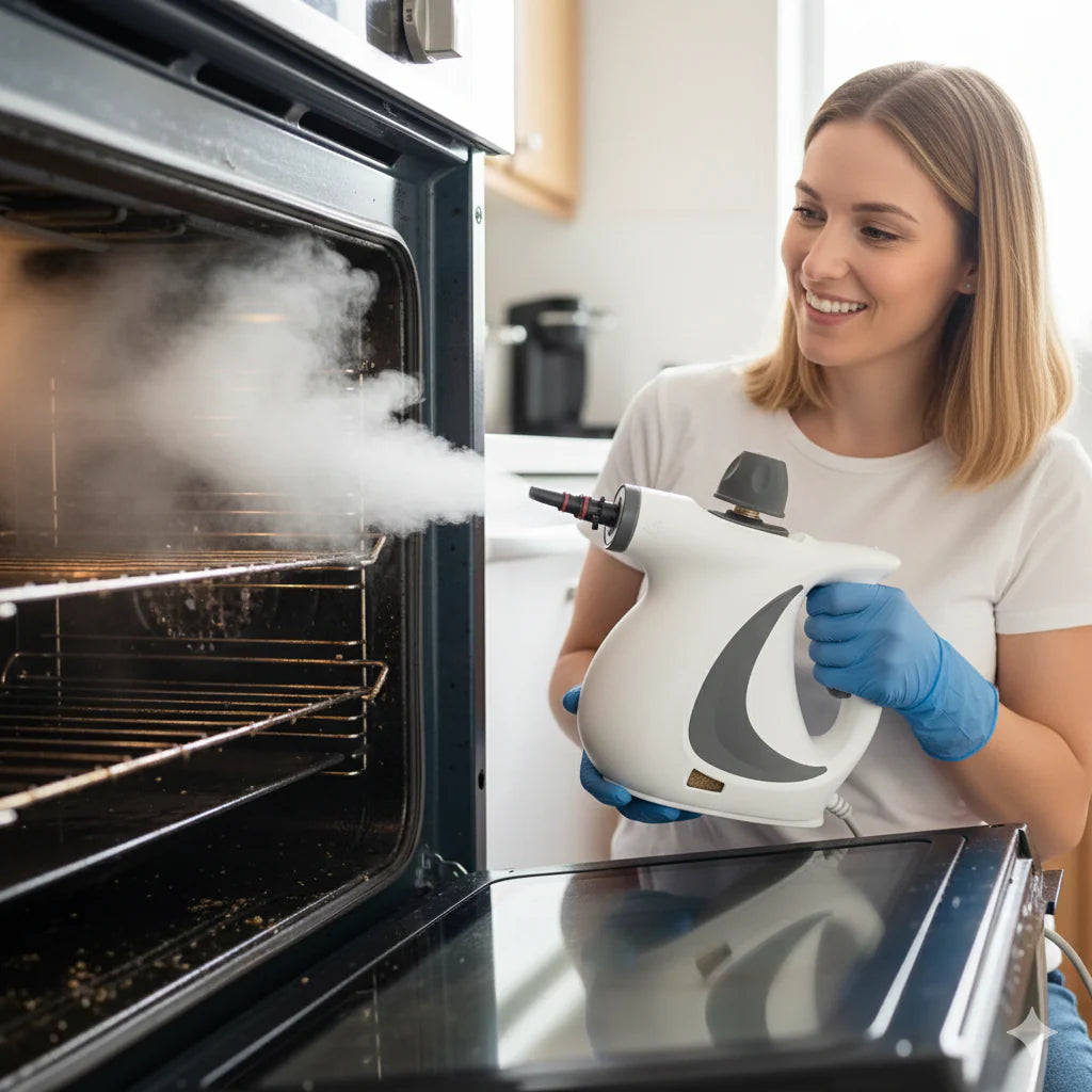 Gorąca para pod wysokim ciśnieniem rozpuszcza tłuszcz, kamień i brud bez mocnego szorowania.